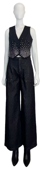 Los taches metálicos se convierten en los protagonistas del paquete, presentes tanto en las prendas como en una cápsula contundente de accesorios elevando los looks hacia propuestas perfectas para la noche.